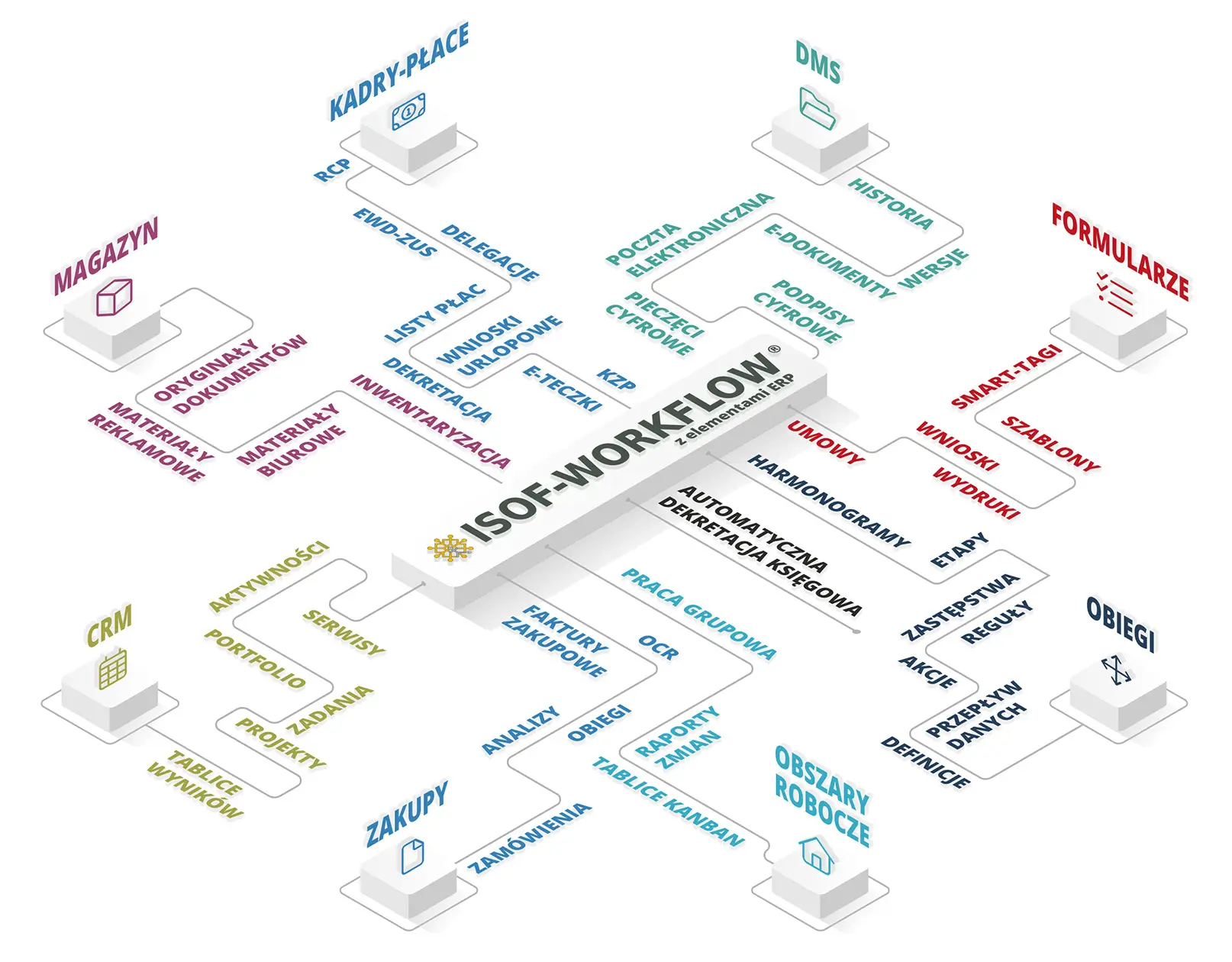 ISOF-WORKFLOW to innowacyjne rozwiązanie ECM (Enterprise Content Management) z zakresu zarządzania obiegami dokumentów i pracy adresowane do przedsiębiorstw, urzędów, instytucji, placówek medycznych, finansowych i banków.
